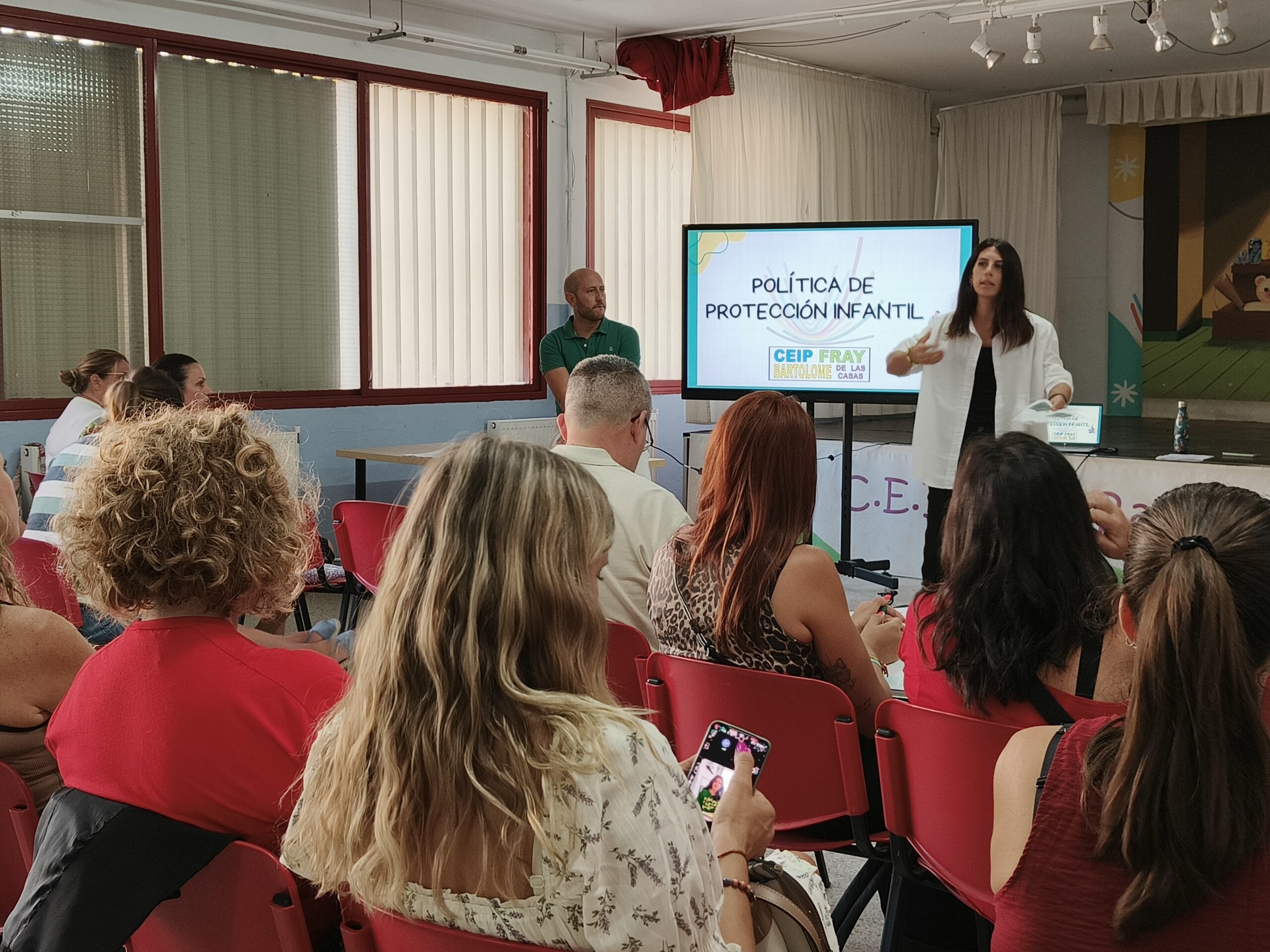 Este año también ha sido especialmente significativo para el CEIP Fray Bartolomé de las Casas, que presentó públicamente su Política de Protección Organizacional a toda la comunidad educativa. Entre Amigos acompañó a la escuela durante el mes de septiembre en este proceso, compartiendo aprendizajes, resolviendo dudas y apoyando la implantación de un modelo que fortalece la cultura del buen trato y la seguridad en el centro.